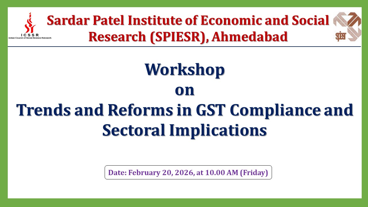 Workshop on 'Trends and Reforms in GST Compliance and Sectoral Implications' on February 20, 2026 supported by Indian Council of Social Science Research, New Delhi.