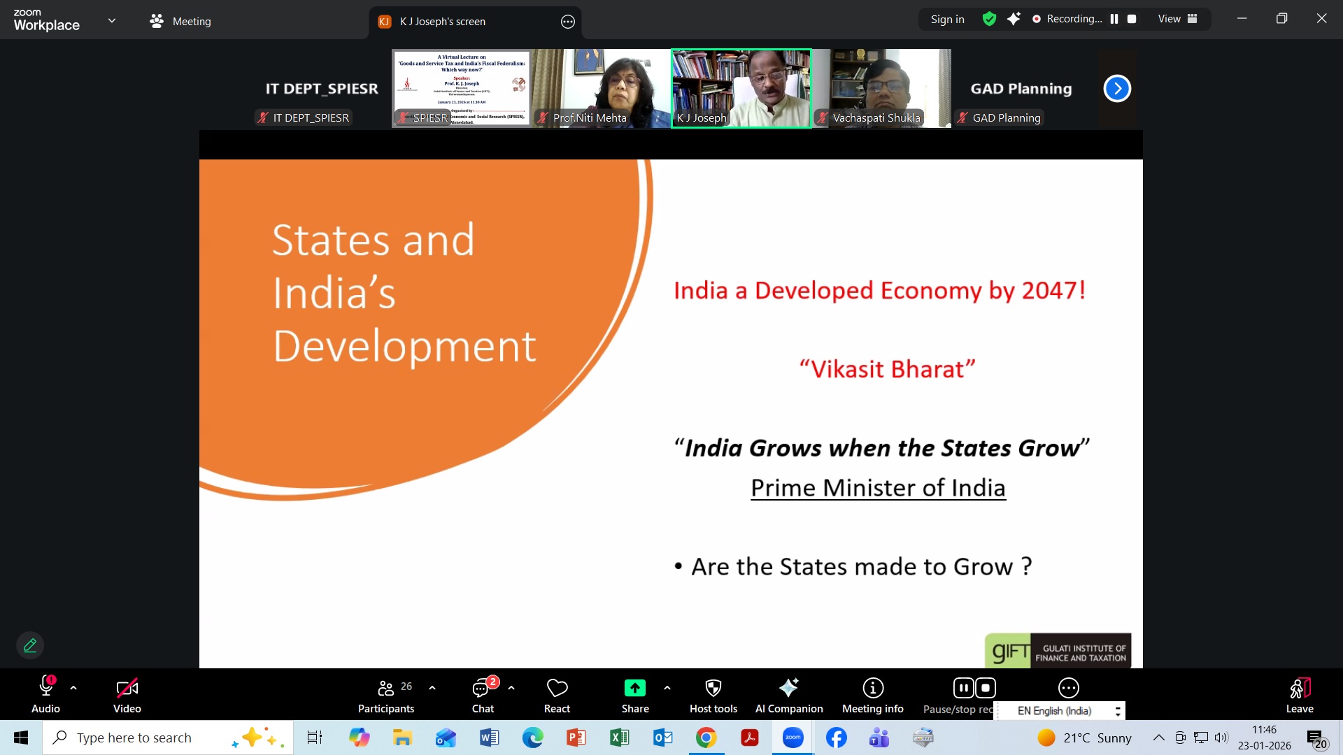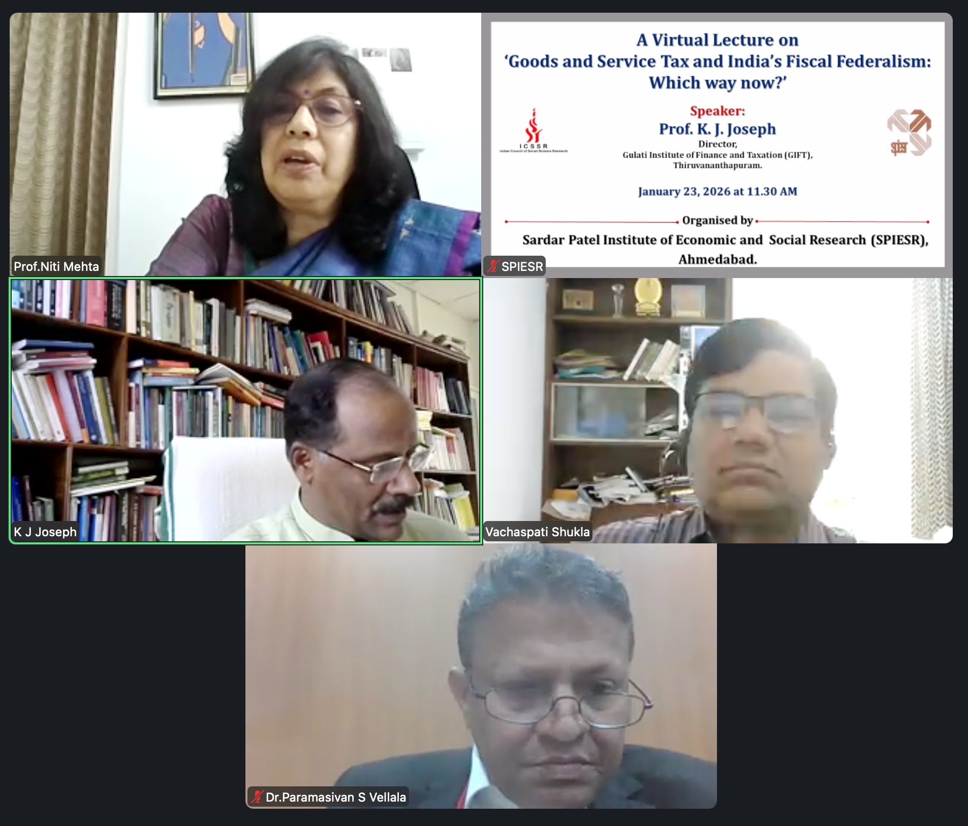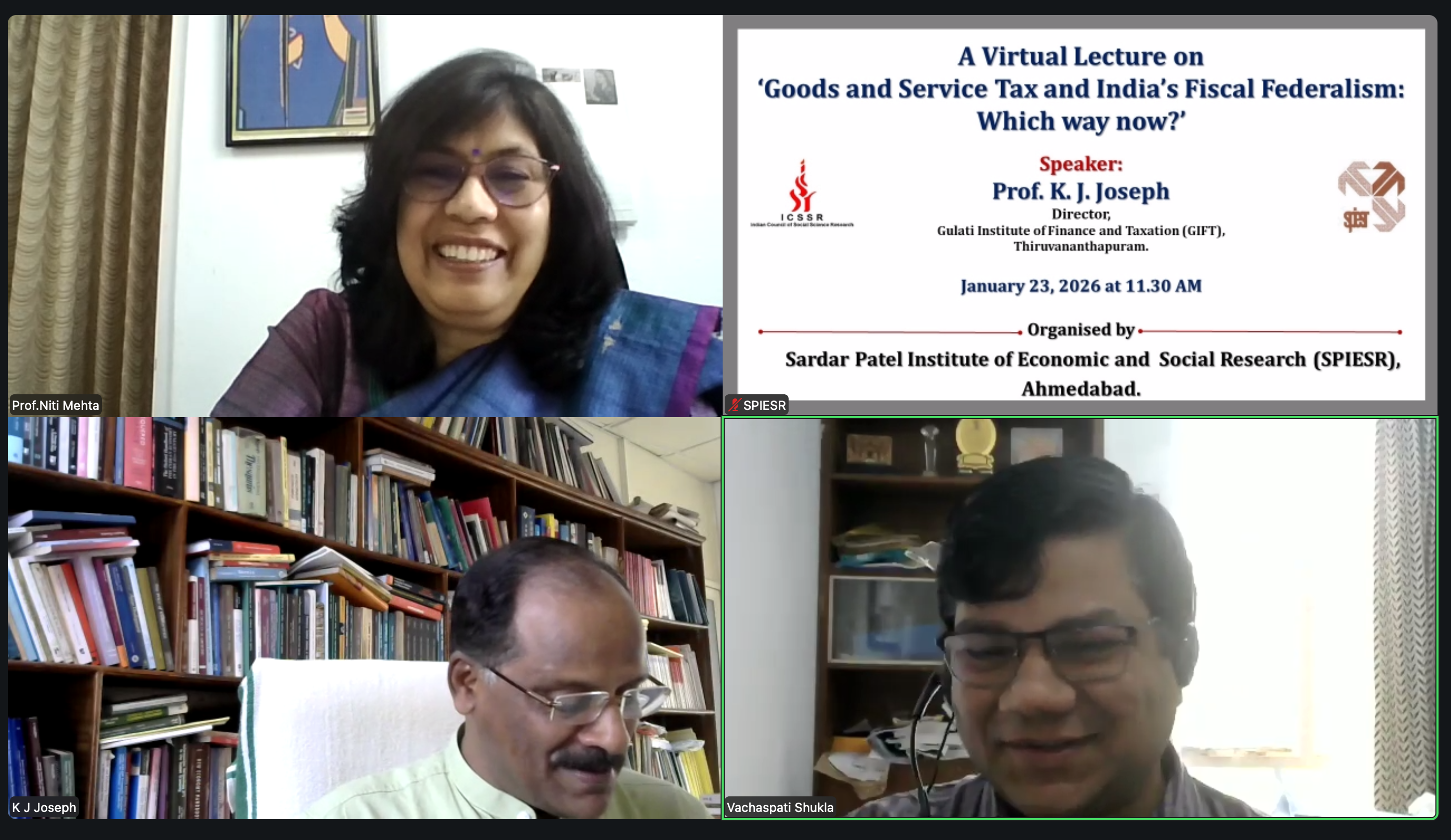 A virtual lecture on 'GST and India's Fiscal Federalism: Which way now?' on January 23, 2026