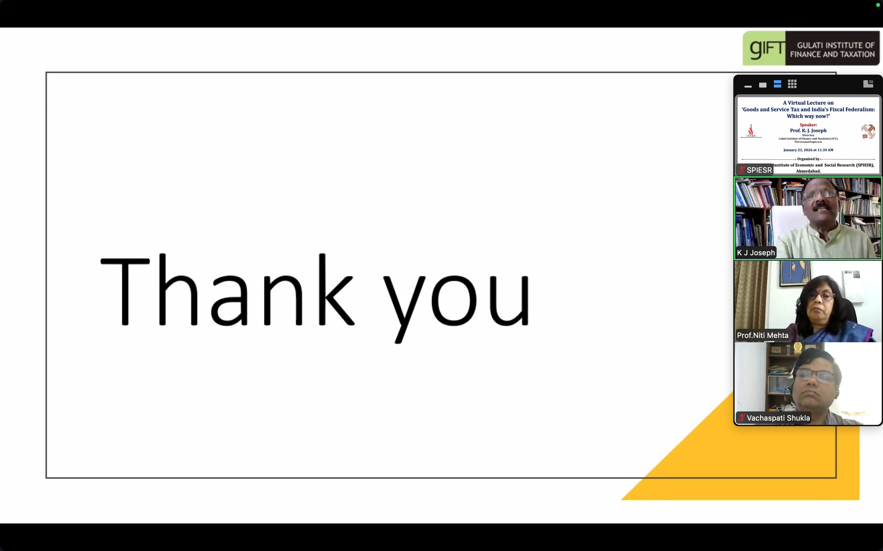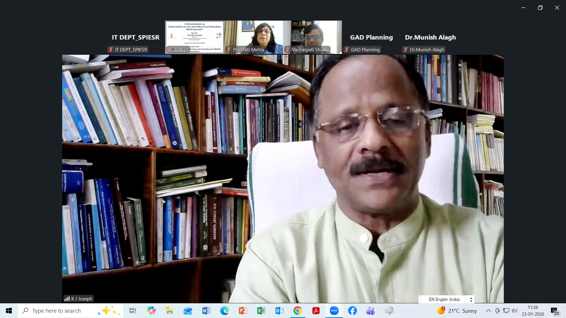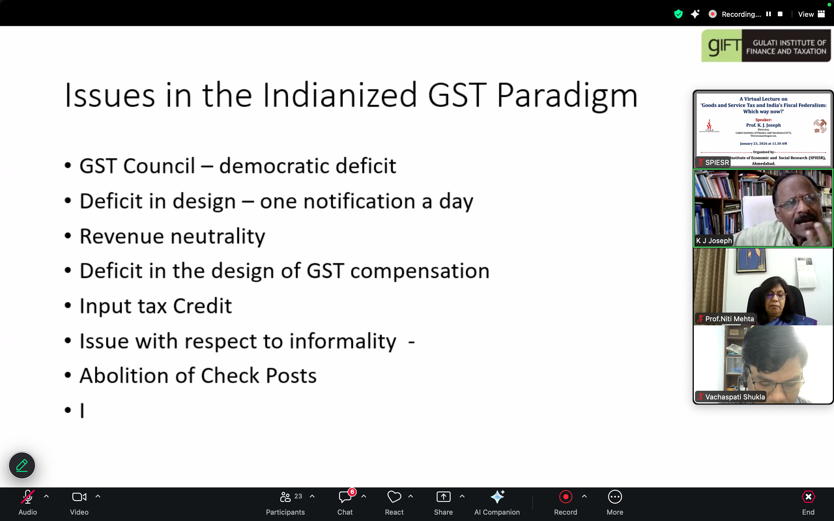 A virtual lecture on 'GST and India's Fiscal Federalism: Which way now?' on January 23, 2026